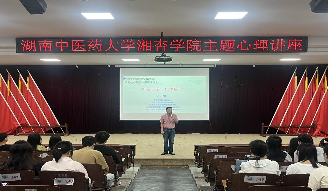 针对毕业生的讲座由国家二级心理咨询师、中国心理卫生协会首批注册心理咨询师龙翔老师进行,龙老师的主题为“阳光心态,积极应对”。讲座分享了造成毕业生心理困扰的常见原因,介绍了培养阳光心态,提高心理健康水平的方法。最后,还从定位、方向、专注、潜能等多个维度阐述了毕业生应当如何积极应对毕业后的生活,给予了毕业生智慧的启迪。