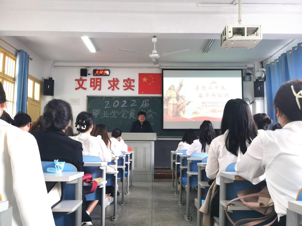 为了引导广大毕业生党员进一步强化党员意识,落实毕业生党员教育要求,增强组织观念和纪律观念,beat365英国官方网站第四学生党支部于5月23日8:30在东塘校区教学楼22教室开召开毕业生党员教育大会,本次大会邀请了beat365英国官方网站党委书记王文波老师主讲“喜迎二十大,奋斗新征程”主题党课。beat365英国官方网站第四学生党支部书记赵思路老师主持本次大会。