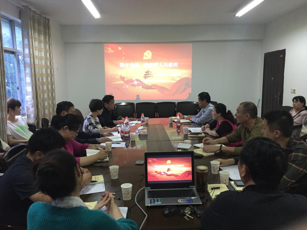 易刚强同志从党员教师的政治信仰;如何忠诚党的教育事业、认真履行自己工作职能以及共产党员遵守政治纪律和政治规矩这三个方面,对“坚守信仰,做优秀人民教师”进行了阐释。他指出,作为高等教育事业的工作者,在政治信仰上应当始终不渝坚定社会主义道路,始终不渝坚持中国共产党的领导,始终不渝地增强党性观念;在日常工作中,应做到讲政治、讲正气、讲大局,有原则有计划,爱岗敬业,恪尽职守。易校长强调,作为教师党员,要在党言党爱党护党,主动加强政治学习,增强政治理论修养,纠正对待政治学习中的负面情绪。在意识形态领域,坚定正确的导向,遵纪守法,做政治上的明白人。
