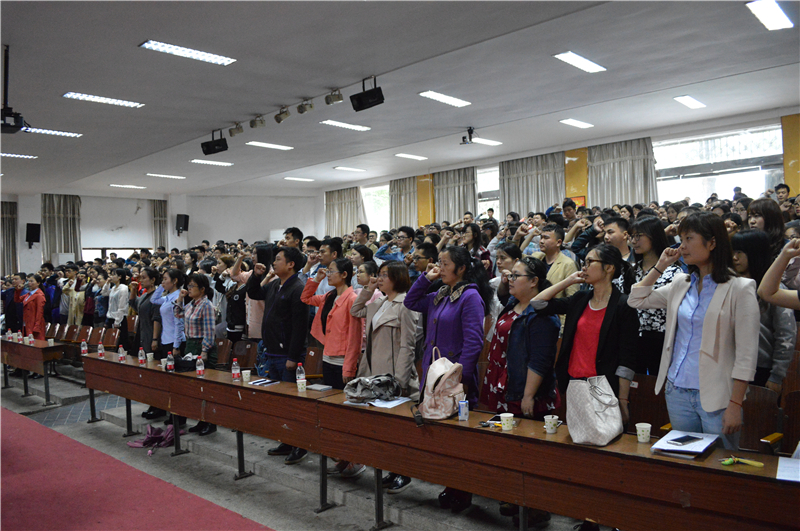 最后,在庄严的《国际歌》声中,毛芳武同志领读入党誓词,全体师生党员右手握拳,高举额际,在党旗下庄严宣誓。在铿锵有力的宣誓声中,此次动员大会圆满落幕。