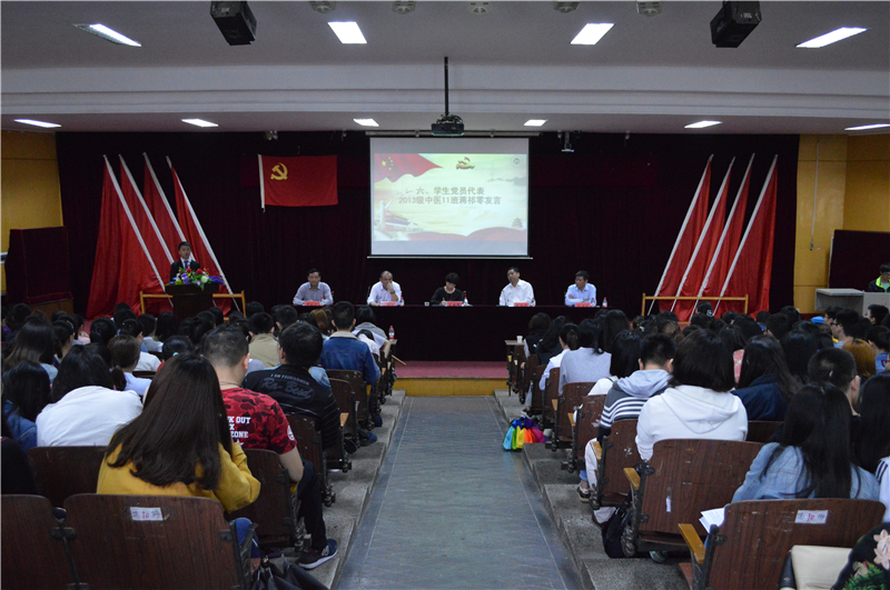 动员报告结束后,2013级中医11班蒋祁零作为学生党员代表发言,他从“带头意识”、“奋斗意识”、“担当意识”、“务实意识”四个方面激励学生党员认真学习“两学一做”,做一名合格党员。