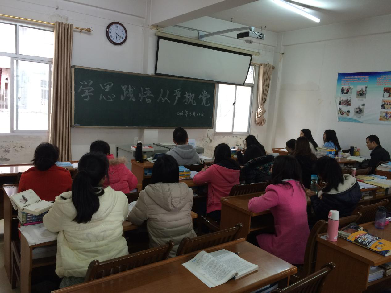 为贯彻学院“两学一做”学习教育实施方案,逐步深化对党章党纪党规的学习。把“两学一做”学习教育贯穿到日常的学习工作生活中,2016年3月22日下午beat365英国官方网站第五学生党支部常德教学点党小组在办公教学楼第四教室开展了主题为“学思践悟,从严执党”党小组学习会。参加此次学习会议的共16人,其中党员9人,预备党员7人。应到16人,实到16人,会议由党小组组长郑中英主持。