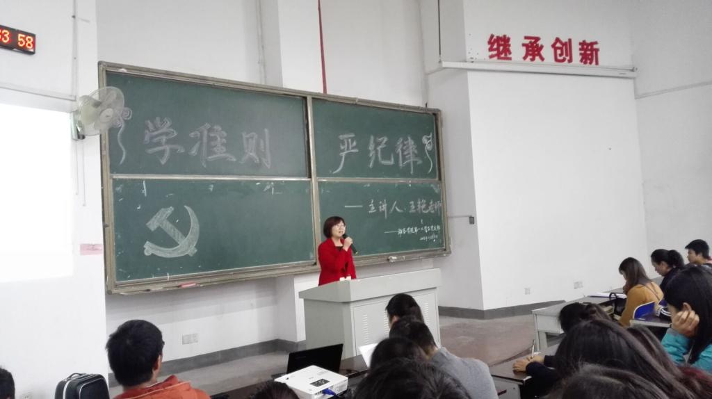 3月30日下午5:30,beat365英国官方网站学生第一党支部在2307教室举行“学准则 严纪律”主题学习活动。主讲人为beat365英国官方网站学生第一党支部书记王艳老师,含浦校区所有党员及入党积极分子参加此次学习活动。