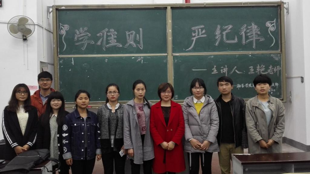 王老师围绕《中国共产党廉洁自律准则》、《中国共产党纪律处分条例》内容,阐述了学习的重要性以及详细介绍了《准则》和《条例》的重点内容,最后向学生们提出了学习要求和学习方法。王老师指出要学好《准则》先要学好《中国共产党章程》,她重点讲述党员廉洁自律规范:坚持公私分明,坚持崇廉拒腐,坚持尚俭戒奢,坚持吃苦在前,希望学生党员们做有道德操守的合格党员。接下来她重点谈到如何严纪律,严何种纪律?她强调要遵守政治纪律、组织纪律、廉洁纪律、群众纪律、工作纪律等,希望党员同志们不搞无原则的一团和气。最后王老师讲到如何学《准则》、《条例》,她提醒同学们要结合党章学,结合党的十八大以来中央的新精神学、新要求学,结合自身实际学,结合旧的法规学。她希望同志们能下足基础功夫,背准则,读条例,刻印在心,外化于行。