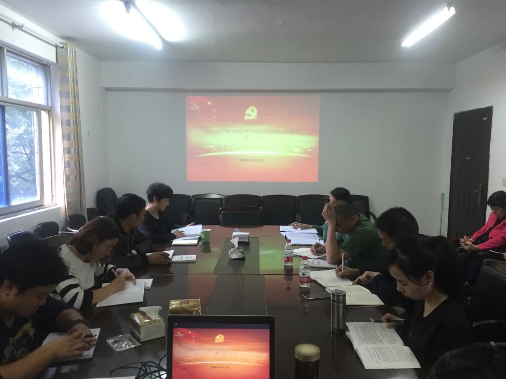 首先,职工党支部书记宁思思组织全体党员全文学习了《条例》,并诠释了《条例》中“组织设置”、“主要职责”及“思想政治工作”等重点条文。