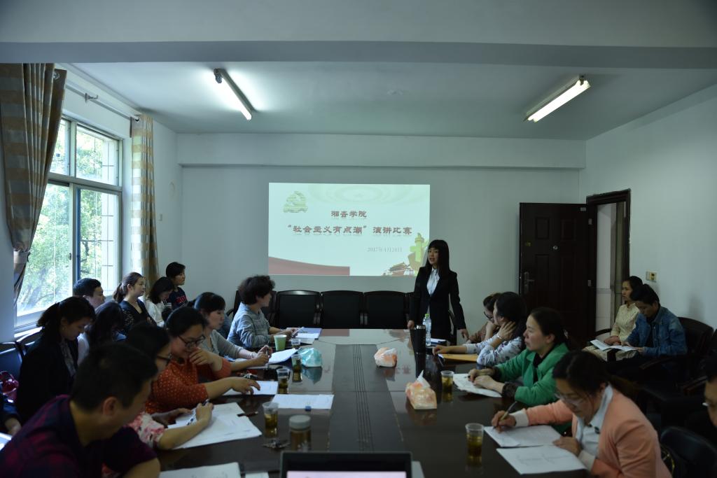 此次比赛,既是对一年以来“两学一做”学习教育的成果展示,也是对学习成果的灵活运用,更是全体党员一次重新学习的机会。为此,学院党委进行了广泛的宣传发动,与“社会主义有点‘潮’”的征文同时进行,师生党员热情参与,6个支部共有15位选手参赛。比赛当天,15名选手依次登台,通过“两学一做”学习教育中自己对《中国共产党章程》、《党史》、《习近平重要讲话及治国理政思想》等理论的认真学习,结合自己工作、学习实际,用生动的语言,饱满的感情,诠释了中国梦是个什么梦、社会主义如何潮、中国社会主义的道路、理论自信等主题,选手们慷慨激昂、热情澎湃,听众们聚精会神、热情回应,台上台下情感共鸣,比赛现场高潮迭起,掌声不断。