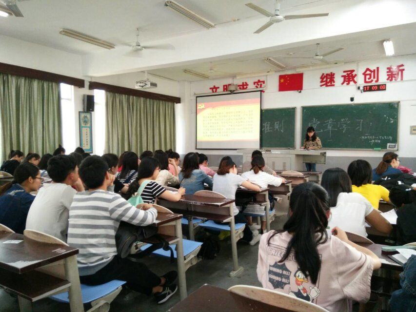 下午四点半beat365英国官方网站第一第二学生党支部于beat365英国官方网站含浦校区2204教室积极开展党性知识专题培训。张凤华同志和梁琼同志分别以“认真学习党章,严格遵守党章”和“党内政治生活准则”的主题为与会党员上了一堂生动的党课。参加党课学习人数28人,无迟到早退现象。