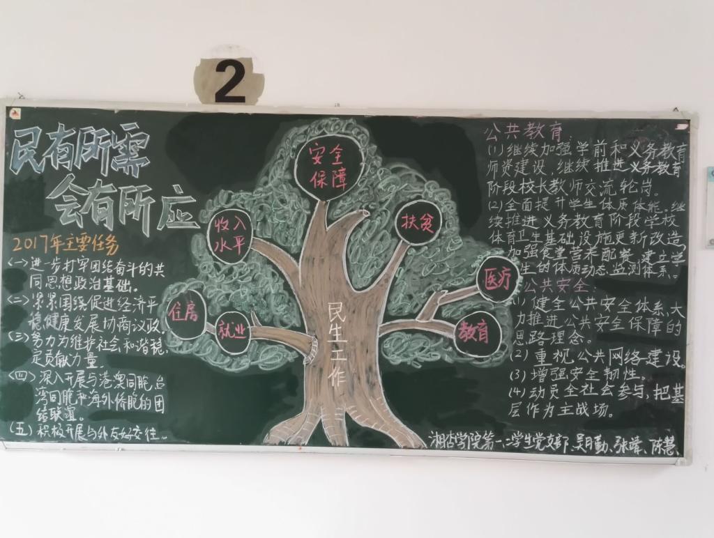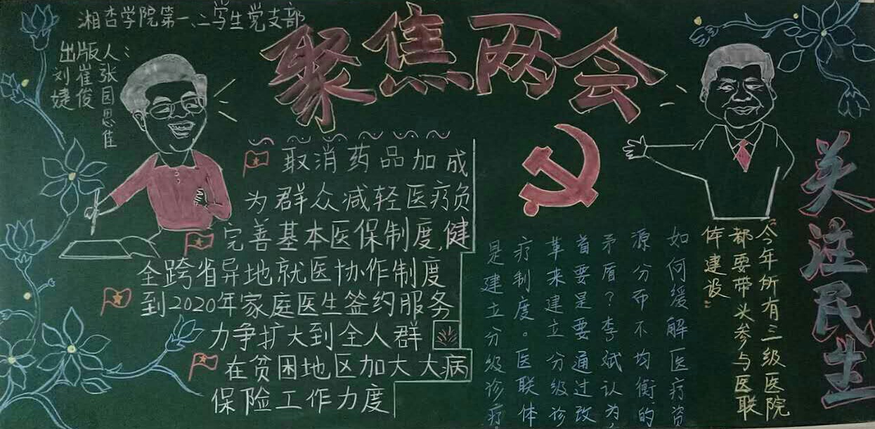 作为中国政治生活当中的一件大事,两会可谓牵动全国人民乃至世界的目光,黑板报是体现学生精神风貌的一个不可或缺的部分,也是学校进行德育教育的一个基础阵地。为进一步学习贯彻两会精神,beat365英国官方网站第一、第二学生党支部组织开展了以“聚焦两会、关注民生”为主题的黑板报出刊活动。