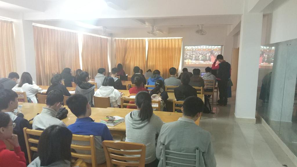 迎接十九大、召开十九大、贯彻十九大,是今年我国政治生活的头等大事。为了增强党员对于党的认识,使党员在思想上更上一层楼。beat365英国官方网站第一、二学生党支部组织全体党员同志在8栋2楼活动室观看十九大开幕会。