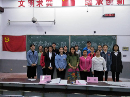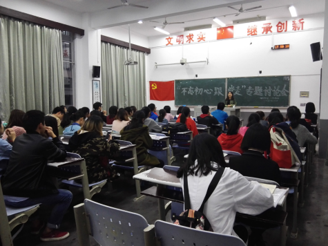 会议伊始,主持人陈白玉同志为大家阐述了本次讨论会的主题及内容。本次活动以树立和践行社会主义核心价值观为核心,以加强各位党员同志的理想信念教育为重点。会上,十名同志分别发表了自己对“不忘初心跟党走”主题的看法,分别围绕了党的历史发展至今,对各个人民国家的至关重要性;自己在学习生活中应该怎样践行党的核心力量,发挥自我价值;不忘初心、继续前进,走近学习榜样、凝聚复兴力量,廖俊波、吴金印、吴亚琴、陈先达、刘锐、尼玛江村、胡双钱、杜丽群等同志活跃在各个行业,以己之特长,为中国奉献出自己的力量;党的十九大精神对我国新的历史方位做出了精准定位。